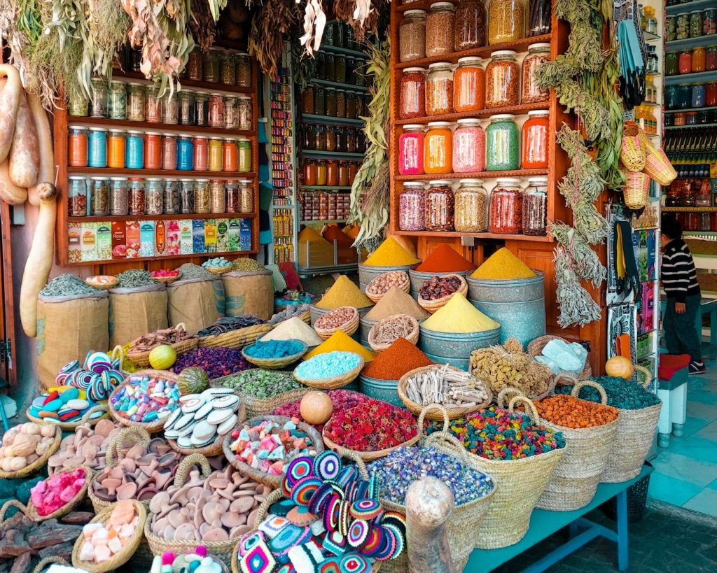 Тем, кто предпочитает атмосферу колоритных базаров, стоит отправиться в медины. Рынок Новой медины — самый ухоженный и удобный для туристов: чистые улочки, множество лавок с сувенирами и спокойная торговля без навязчивых зазывал. Здесь легко выбрать подарки и сувениры — от расписанной вручную керамики до пряных смесей и медных светильников.