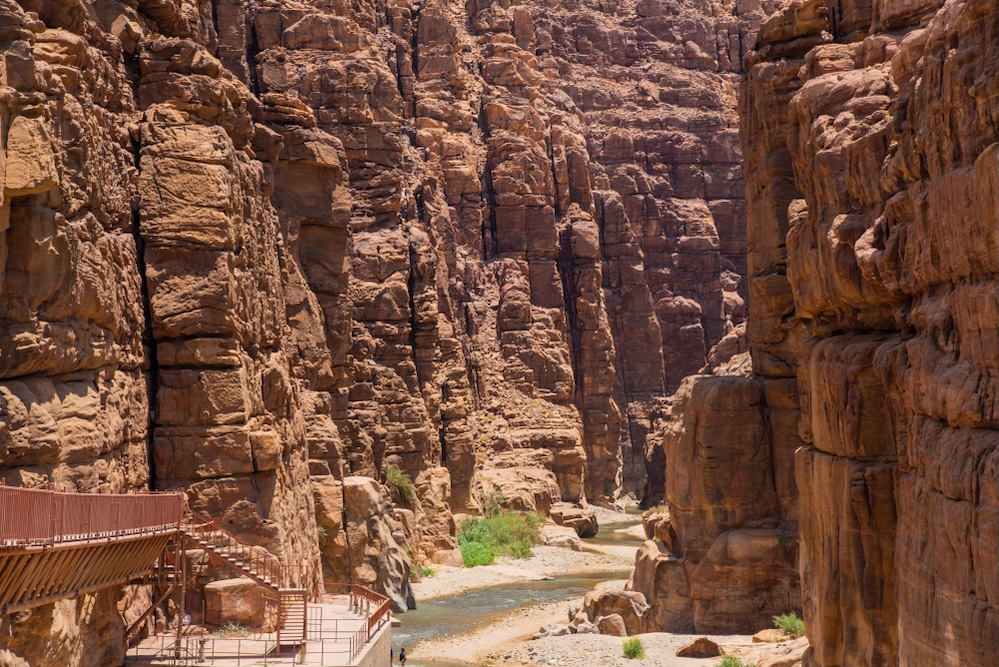 Это ущелье прорезает Иорданское плато и уходит глубоко вниз к берегам Мёртвого моря. Территория заповедная (вход платный), но доступна для хайкинга и коротких походов: можно увидеть иорданских ибексов и хищных орлов, а ещё неплохо промокнуть — часть пеших троп частично проходит вдоль русла река Муджиб.