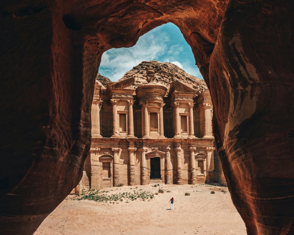 А вот чтобы увидеть второй по популярности вид Петры, придётся порядком попотеть (или нанять проводника с местным мулом, если вы не боитесь такого подъёма по скалам). Дорога от Эль-Хазне до Ад-Дэйр займёт не менее часа. Награда за пройденные 800 ступеней — высеченный в скале храм помасштабнее предыдущего (и несколько бедуинских кафе напротив, откуда можно разглядеть каждый выступ, попивая содовую).