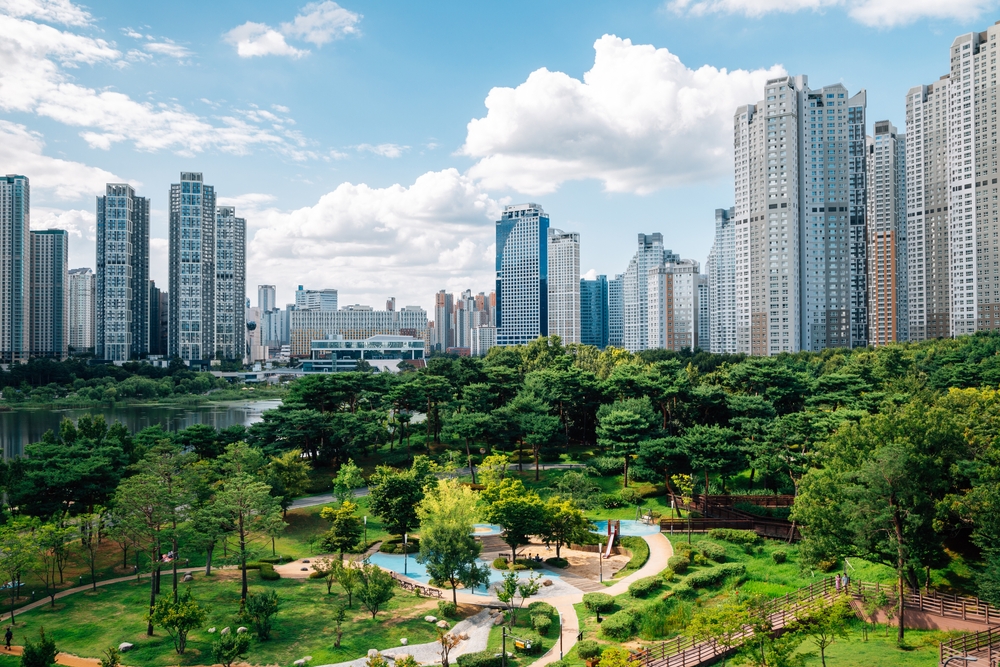 Gwanggyo Lake Park — городской парк на окончании красной ветки метро (S) с озером и многочисленными локациями для отдыха на открытом воздухе, где в хорошую погоду собираются местные. После заката с западного берега озера открывается отличный вид на высотный жилой квартал напротив.