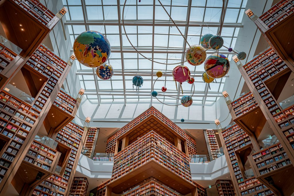 Starfield Suwon — гигантский торговый центр, на нескольких этажах которого расположена новая модная локация-библиотека, магнит для фотографов и инфлюенсеров. Рядом расположен винил-бар, где можно послушать пластинки из довольно внушительной коллекции и выпить кофе. Входной билет стоит 18 500 вон* (1 000 рублей*), в цену включён один напиток.