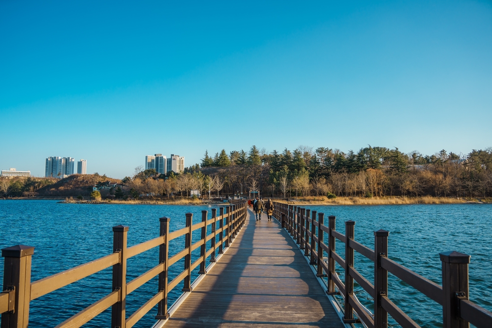 Для оздоровления и погружения в тишину отправляйтесь на прогулку вдоль озера Yeongrang по экотропе. В парке есть интересная активность — босоногая тропа с красной глиной. Локация будет почти сразу у входа со стороны улицы Beonyeong-ro 129beon-gil и автовокзала.