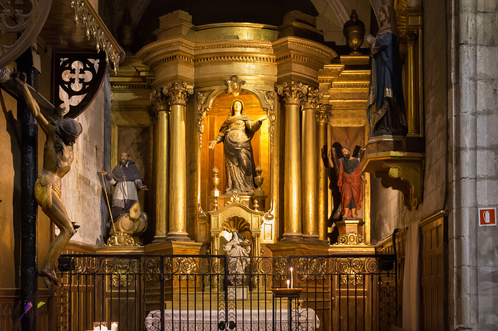 Внутри почти всегда немноголюдно. Мягкий полумрак оживляют цветные лучи, проходящие сквозь витражи и отражающиеся на капеллах и алтарях XVI века. Главная святыня храма — Чёрная Мадонна, статуя Девы Марии из тёмной породы дерева. Считается, что прикосновение к сфере в её правой руке приносит удачу и помогает в исполнении заветных просьб.