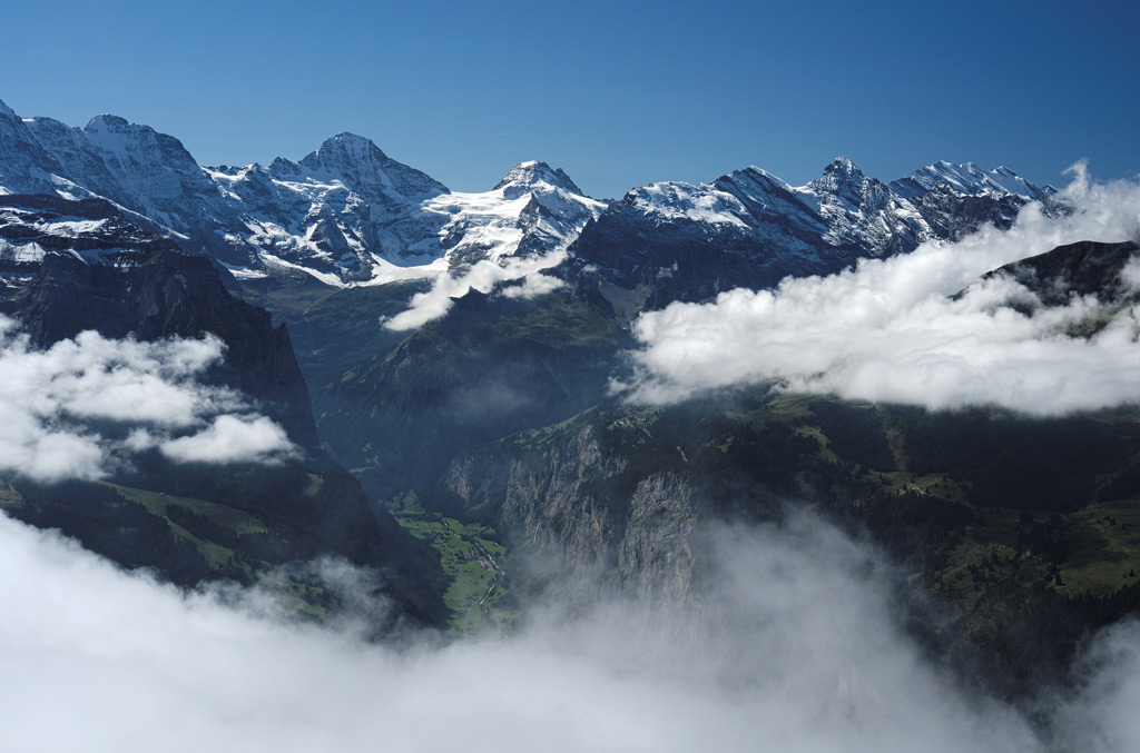 Сразу над долиной Лаутербруннен, той самой, которая вдохновила Толкиена, находится деревня Мюррен, откуда открываются удивительные вида на 3 самых известных в мире горы: Эйгер, Монк и Юнгфрау. Кончено же здесь будет хорошо и летом, но если вы приедете зимой, вы поймёте, что вдохновило англичан изобрести здесь лыжи.