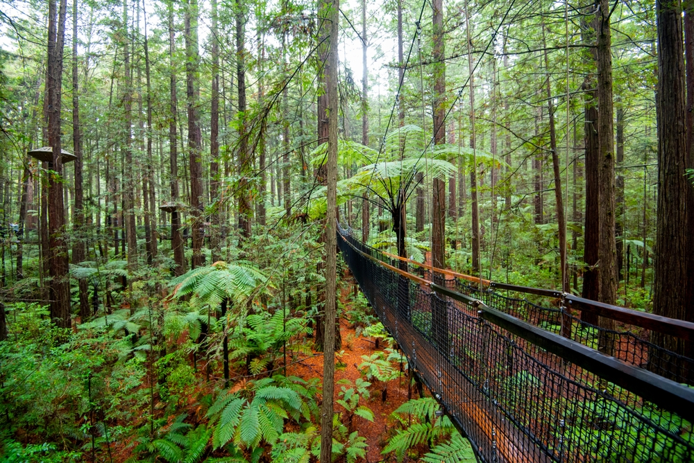 Главная точка притяжения туристов — Redwoods Treewalk, подвесная тропа между кронами деревьев. Маршрут проходит по системе мостов на высоте около 12 метров и позволяет взглянуть на лес с необычного ракурса; есть несколько уровней сложности, включая более высокий для тех, кто не боится высоты. Вечером пространство преображается: между стволами загораются деревянные фонари, и получается настоящая сказка. Помимо подвесных мостов, в лесу проложены пешеходные и велосипедные маршруты, так что сюда легко вписать как короткую прогулку, так и более долгий выход на природу.