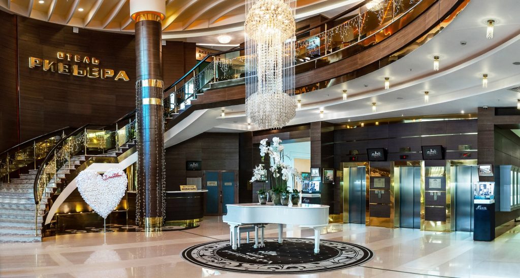 - Четырёхзвёздочный отель с аквапарком «Ривьера» (оценка 9,6 из 10) — стоимость двухместного номера от 26 000 рублей* в сутки.
