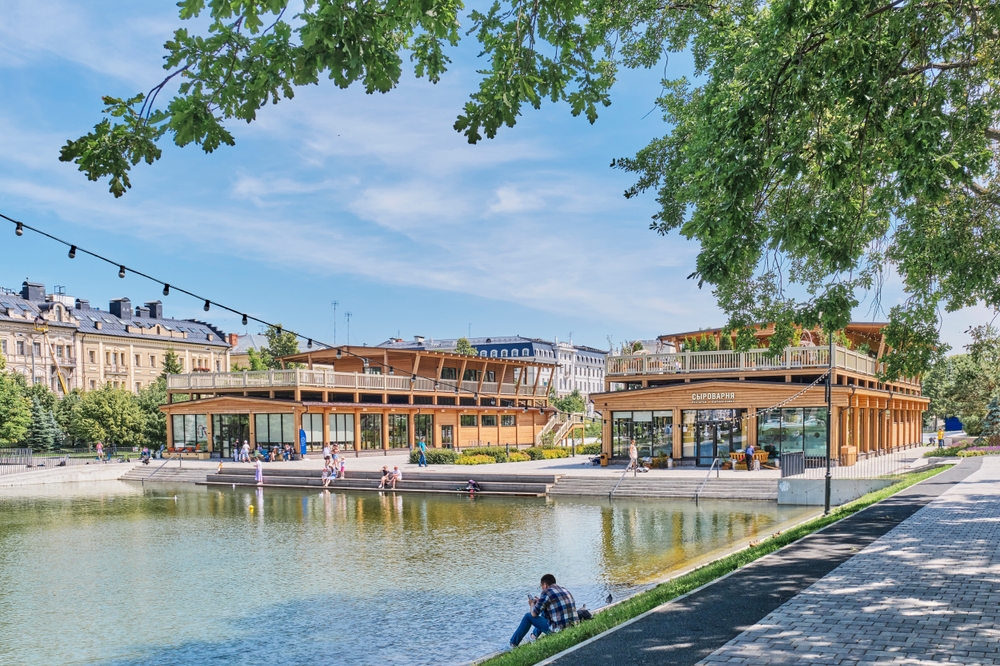 У реки расположились красивые деревянные купеческие дома, ещё тут находится первая соборная мечеть аль-Марджани, в которой сложно распознать религиозное сооружение. В общем, настоящий музей под открытым небом — и это не очередное клише, а реальность.