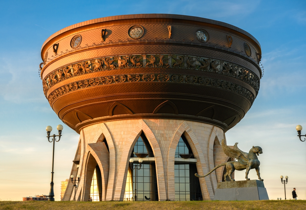 Это, пожалуй, самая неоднозначная достопримечательность Казани — и к тому же современная. Здание, построенное в 2007 году, вызвало немало споров: одни говорили, что оно портит архитектурный облик города, другие — что, наоборот, украшает и дополняет. Так что определённо стоит прийти сюда и самостоятельно посмотреть, что же такого особенного во дворце, где расположилось Министерство сельского хозяйства Республики Татарстан. Лучше всего запланировать визит на вечер, когда здание и роскошное бронзовое дерево в центральной части его фасада эффектно подсвечивают.