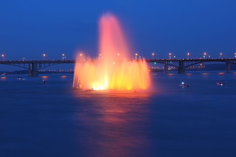 Трёхструйный фонтан бьёт прямо из реки Обь. Лучший вид на него открывается из парка «Городское начало», неподалёку от автовокзала. Фонтан работает с мая по сентябрь. Вечером, когда стемнеет, к фонтану добавляется цветомузыка — меняется подсветка и высота струй.