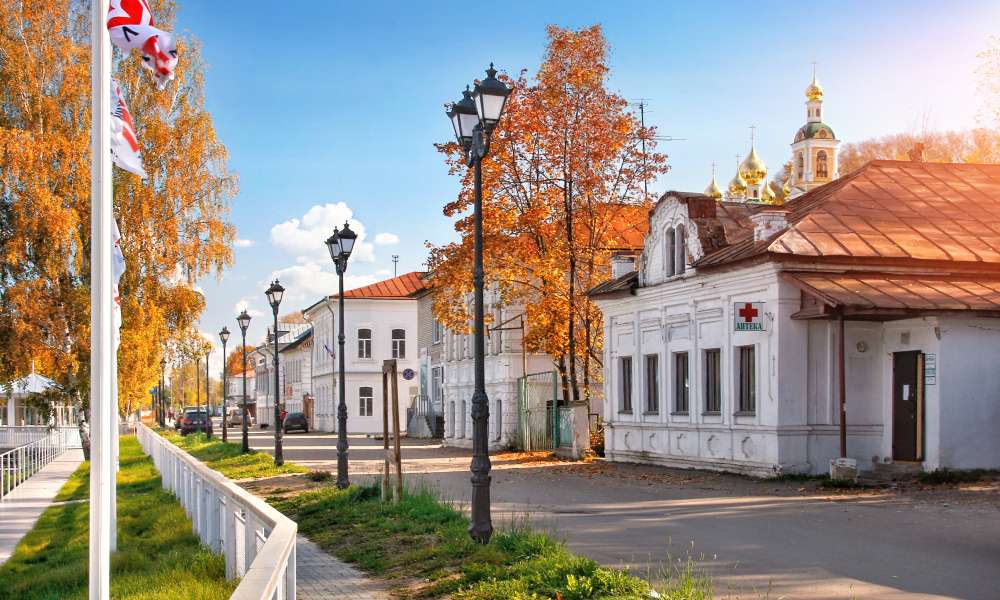 Плёс — идеальный образец тихой и уютной русской провинции, где постоянно проживает около 2 000 человек. В город даже запрещено въезжать на автомобиле, если вы тут не забронировали номер в отеле. Здесь у вас точно получится перенестись на пару столетий назад, отдохнуть от ритма мегаполиса, встретить потрясающие рассветы и проводить закаты, насладиться пением птиц и золотыми пейзажами.