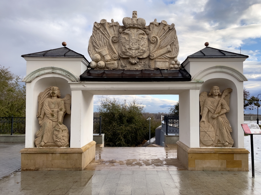 Императрица Елизавета Петровна приказала установить ворота в знак благодарности за подавление башкирского восстания в 1755 году губернатором Оренбурга Иваном Неплюевым. Прежде они стояли на выезде из города и смотрели в сторону степей, чтобы неприятели помнили о русской силе. Но со временем ворота разрушились, и в 2008 году, к 265-летию Оренбурга, установили их точную копию, но уже около исторического спуска к Уралу, напротив Казённой палаты.