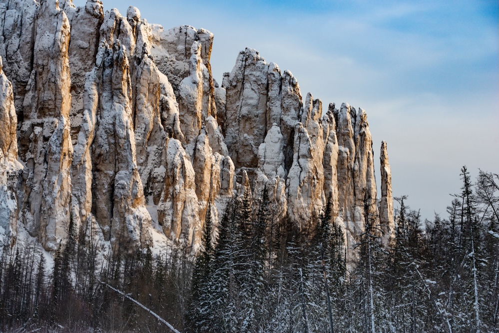 Отдельно стоящие скалы, напоминающие застывших каменных великанов, тянутся на сотни километров вдоль высокого берега реки Лены. Трудно поверить, что такой рельеф начал образовываться здесь около 400–500 миллионов лет назад. Территория Сибирской платформы постепенно поднималась, и в результате возникали разломы и появлялись глубокие речные долины. Всё это привело к активизации карстовых процессов, которые вместе с эрозией, выветриванием и другими природными процессами привели к образованию причудливых и разнообразных форм скал.
