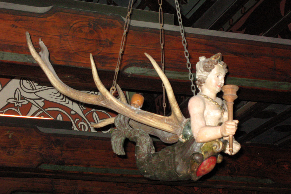 Туристы, которые посещают замок в немецком городе Кохем, первым делом поднимаются в комнату над крепостными воротами. На все остальные красоты бывшей имперской крепости можно полюбоваться позже, а сейчас — срочно пощекотать пузо русалки с оленьими рогами! Русалка висит под потолком и работает люстрой. В Средние века её фигура защищала детей хозяев замка от злых духов. Короли здесь больше не живут, сегодня в замке музей, поэтому русалке остается только приносить удачу путешественникам, которым удалось дотянуться до её живота.