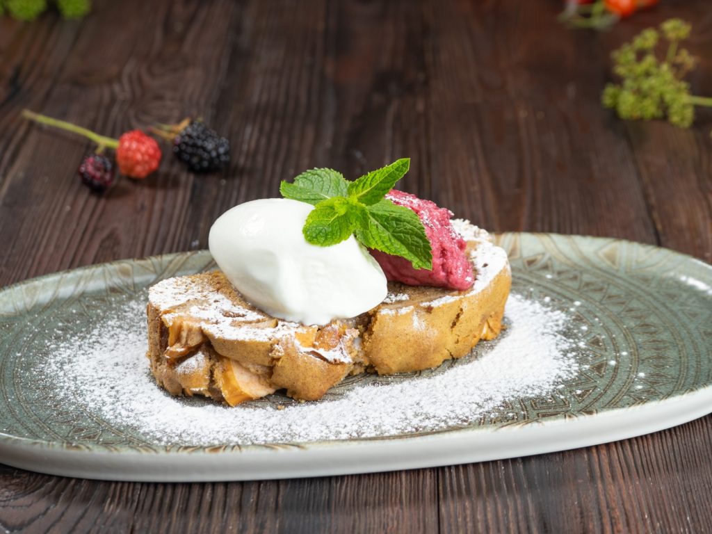 В ресторане Kumpan (ул. 50-летия Октября, 20) его подают на кусочке тёплого бисквита — с фруктами и ванильным мороженым.