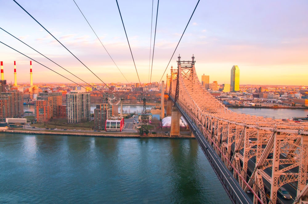 Из окна кабинки канатной дороге, которая соединяет остров Рузвельт с Манхэттеном, можно увидеть мост Куинсборо, пролив Ист-Ривер и квартал Верхний Ист-Сайд. Вагончик вмещает 125 человек и преодолевает весь путь меньше чем за пять минут. Оплатить поездку на канатной дороге можно карточкой нью-йоркского метрополитена — стоимость будет равна поездке на метро и составит 2,75 доллара.