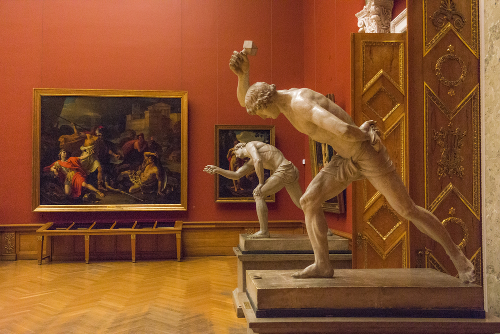 Главное здание — Михайловский дворец. Именно здесь можно увидеть «Последний день Помпеи» Карла Брюллова, «Девятый вал» Ивана Айвазовского, «Бурлаков на Волге» Ильи Репина и другие шедевры великих художников вплоть до XIX века. Более позднее искусство найдёте в корпусе Бенуа — там находится, например, «Миф и реальность» Михаила Врубеля и «Купчиха за чаем» Бориса Кустодиева.