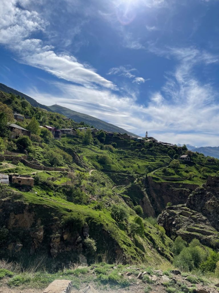 Пейзажи при этом вокруг были настолько красивыми, что даже не верилось — неужели мы видим все это своими глазами? Всё это было похоже на декорации к «Властелину колец или «Игре престолов». Вокруг нас были живописные зелёные склоны горы, бурная река, и старые разрушены дома поблизости. Раньше, много веков назад, здесь жили люди. Они выбрали это место из-за безопасности — никакой враг не пройдёт. Но потом жизнь изменилась, и стало понятно, что нужна дорога, сообщение с другими сёлами. И люди переехали на другую гору и забросили эти дома. Сейчас они превратились очень живописные развалины. Даже удивительно, почему здесь до сих пор не снимают фильмы.