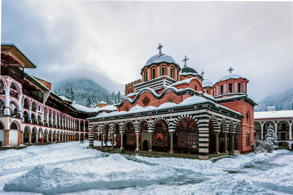 Парящий над горными ущельями массив Рильского монастыря — одна из главных святынь страны и крупнейшая обитель на Балканах. Он расположен в 120 километрах от Софии, в высокогорной долине Рильского массива. Основанный в X веке отшельником Иоанном Рыльским, монастырь по сей день сохранил свою структуру и выдающийся архитектурный облик: внушительные аркады, строгие стены, пятиярусные деревянные галереи. Главный собор впечатляет расписным интерьером и резным иконостасом, над которым мастера работали десятилетиями.