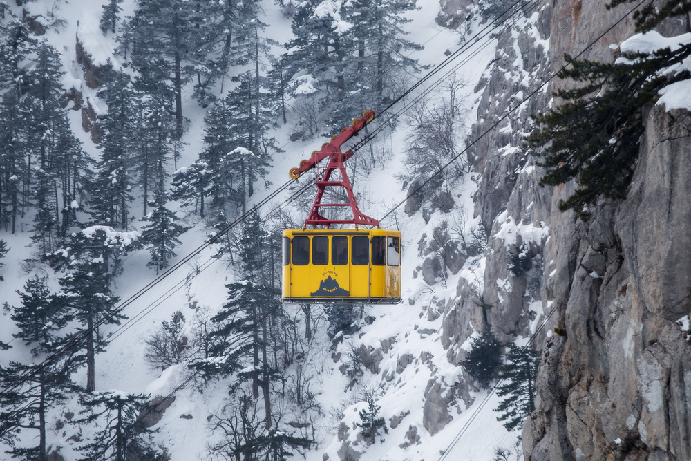 Лучший способ добраться до ай-петринского плато — канатная дорога Мисхор-Ай-Петри. Её длина составляет почти три километра. Она занесена в Книгу рекордов Гиннесса как самая длинная безопорная канатная дорога в Европе. Весной 2024 года она открылась после масштабной реконструкции, и теперь работает круглогодично. Однако дорогу часто закрывают из-за сильного ветра, поэтому важно перед поездкой проверять сайт туристического центра Ай-Петри.