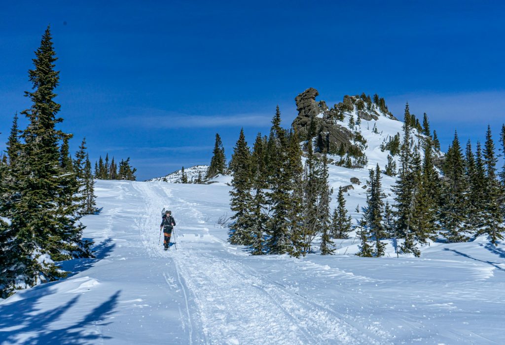 Оптимальный месяц для комфортного катания — март: снег к этому времени закрывает большую часть камней на фрирайдных маршрутах, меньше риска повредить скользяк. Плюс значительно теплеет, так что не холодно даже на открытых подъёмниках.